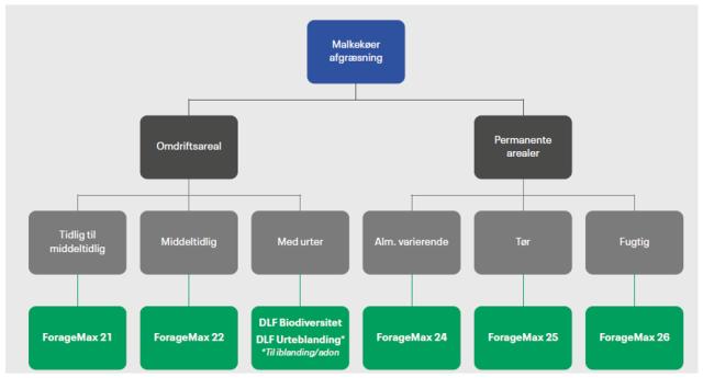 Se vores forslag til græsblandinger i tabel 1. Det ses, at græsblandingen afhænger af din foderplan, din slætstrategi og valg af kløvertype.